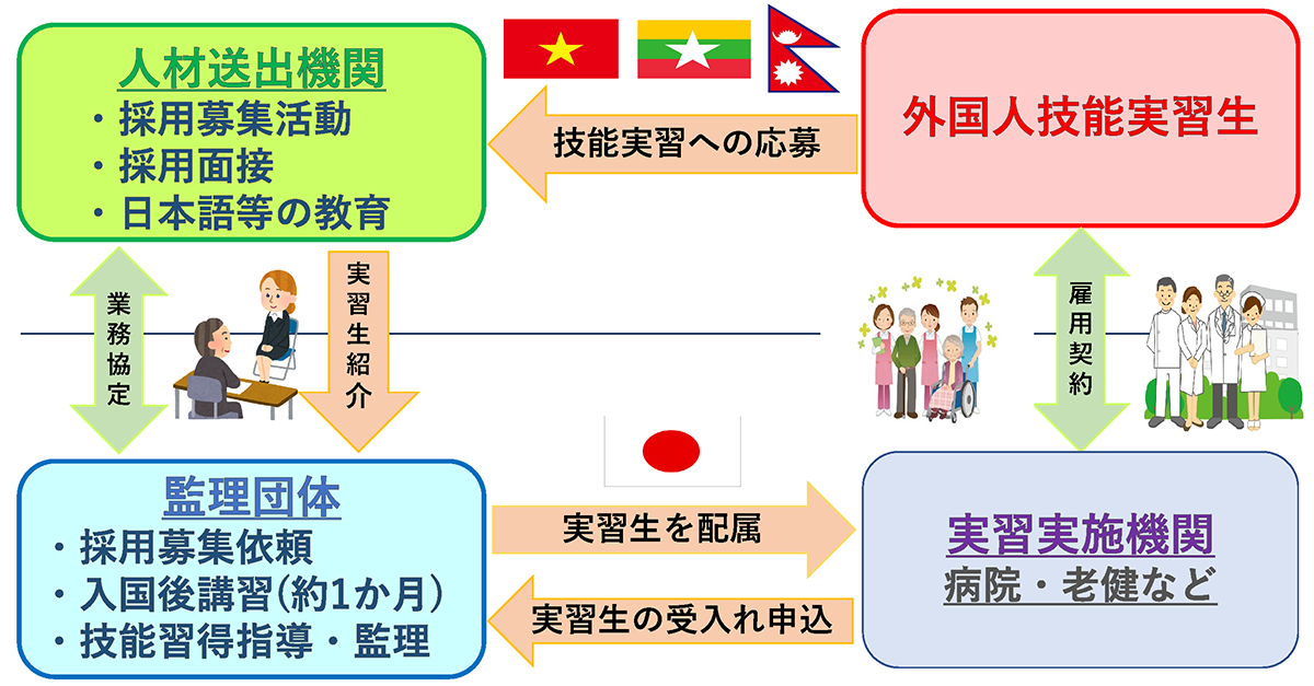 外国人技能実習生への応募・採用・受入等の概念図