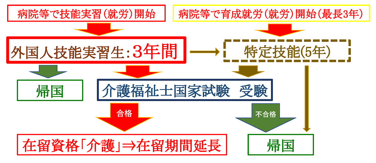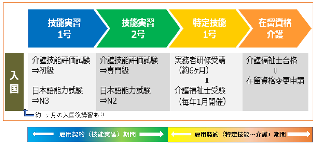技能実習・特定技能・介護の流れ